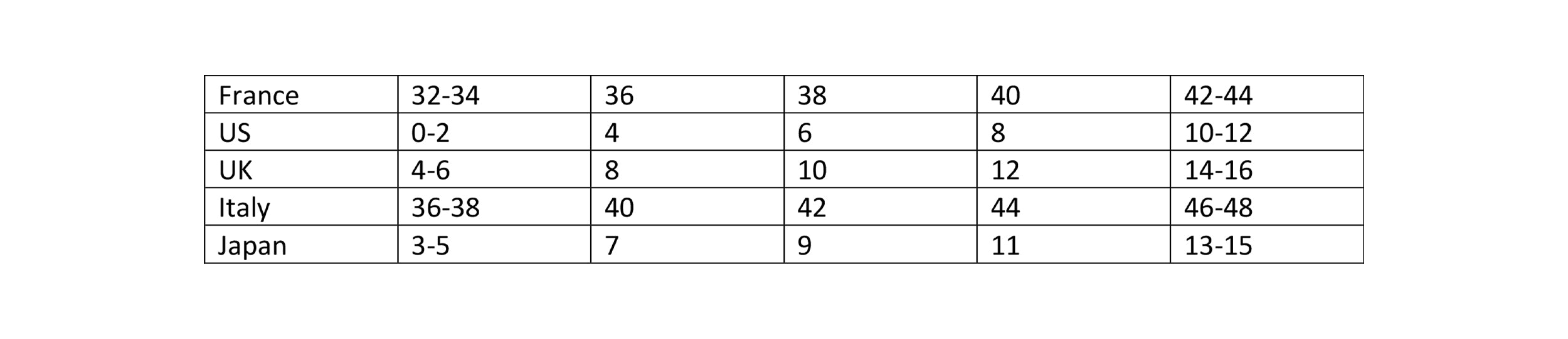 Models’ measurements and item sizes are listed in each product description. Below is our international size guide.